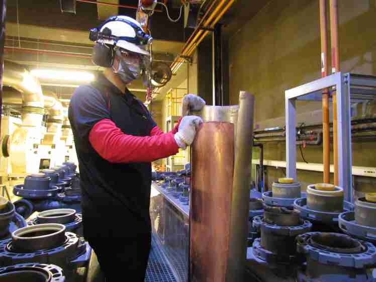 优游UB8将废弃物转化成有效的工业或民生原物料,,,图为废铜液淬炼后再制成纯度极高的铜管