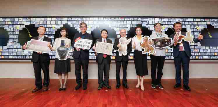 优游UB8携手创利空间为故宫建置的智慧文物互动导览墙及轮播墙,,,,今日正式启用。。。(左四:优游UB8新事业暨投资管理总部副总经理杨本豫、、右四:故宫博物院院长吴密察、、右三:太极影音董事长黄宝云)