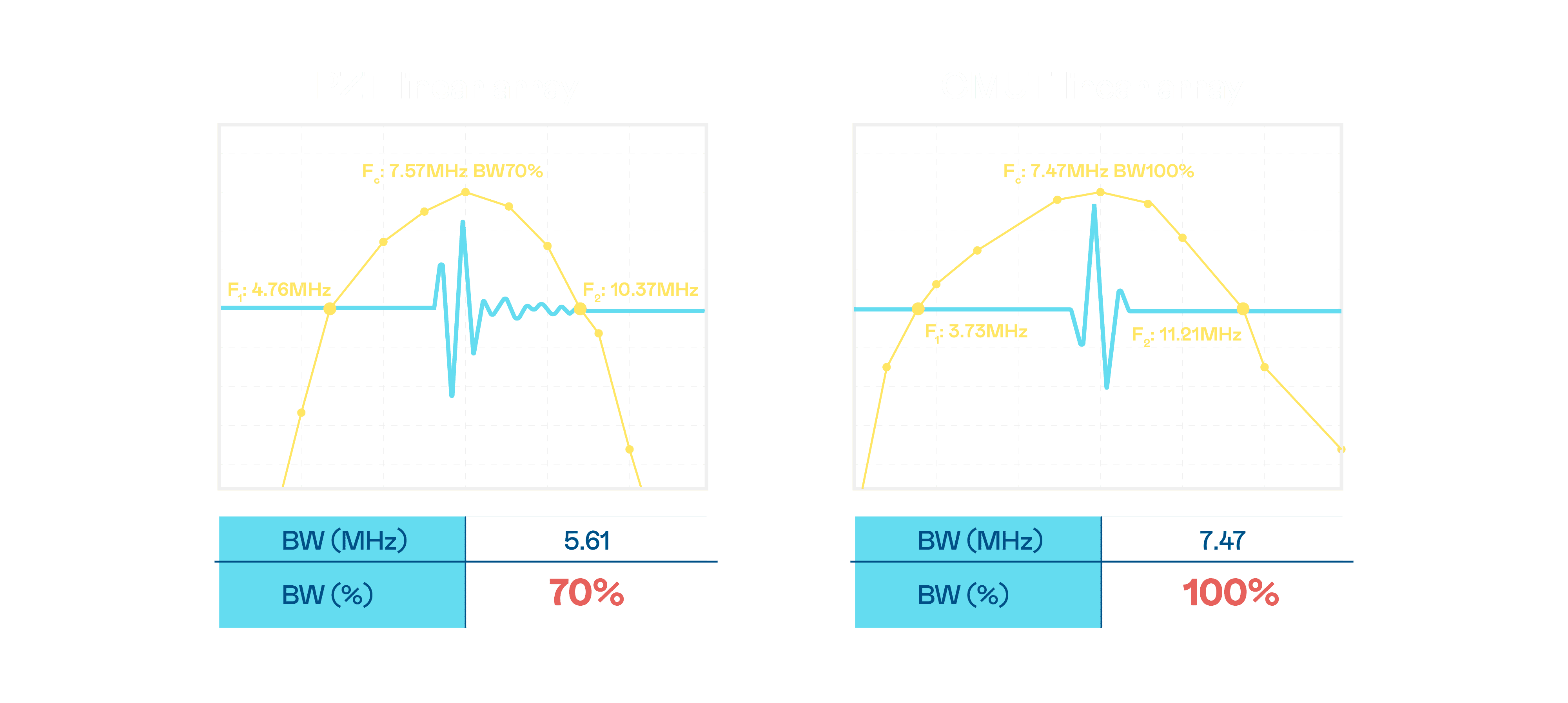 超音波影像的解析度高低,,,,首先取决于探头能发出的讯号频宽。。。。优游UB8 CMUT 可提供高清晰的超音波讯号,,,,提供高频宽、、、高灵敏度、、、、影像纹理细节更高的超音波影像,,,,协助医护人员缩短影像判读时间及利用精准的医疗影像进行诊断。。。